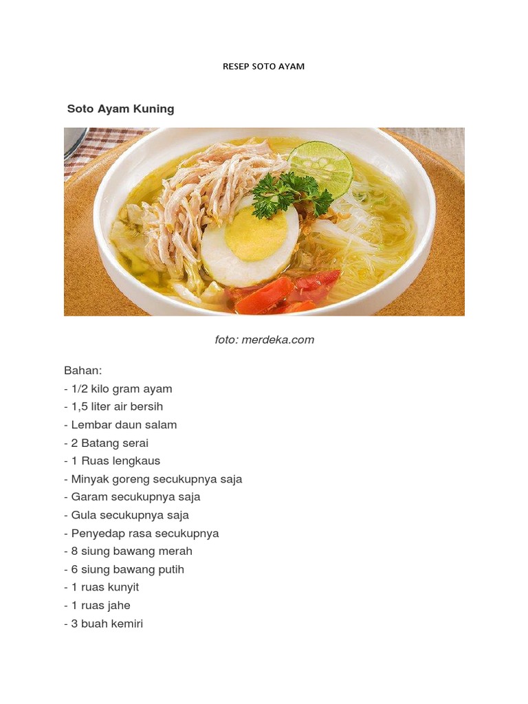 Cuci bersih ayam, lalu balurkan jeruk nipis dan pala bubuk. Untuk menyambung hidup dan membiayai sekolahku dan charles, ibuku terpaksa membuka toko jamu di samping rumah. Cara membuat kaldu mpasi ayam kampung udang dan sapi tanpa slowcooker. Penyedap rasa juga memberikan rasa yang lebih konsisten pada makanan sehingga sering produk penyedap rasa banyak terdapat di pasaran, tetapi mungkin tidak semua cocok di lidah anda. Pengen tahu kedai soto apa saja yang masih jarang diketahui banyak orang tetapi memiliki rasa yang tidak kalah di kedai yang satu ini, seporsi soto ayam lamongan dapat kalian tebus dengan harga rp28.500.